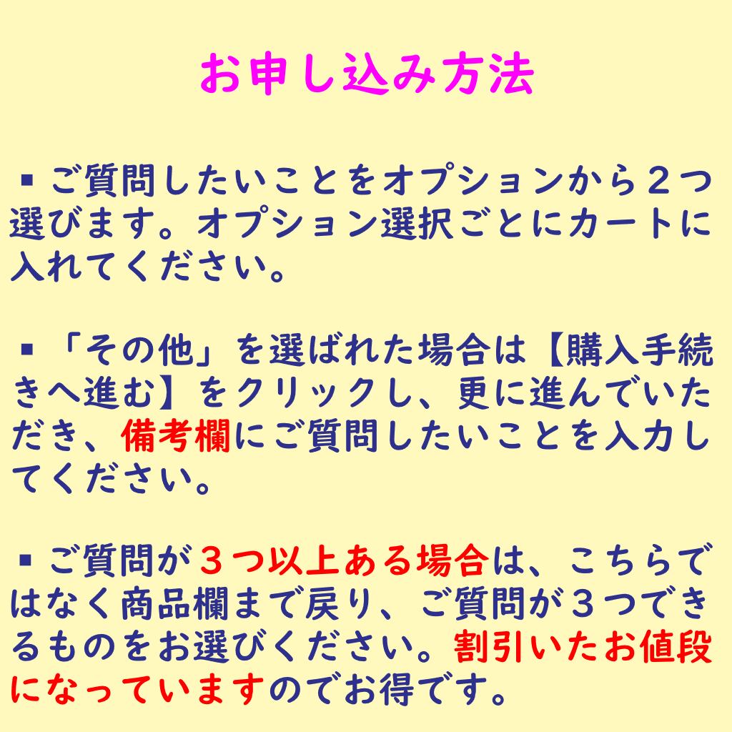 ■申込み方法:オプションからリーディングして貰いたいことを2つ選択(オプション選択ごとにカートに入れてください)